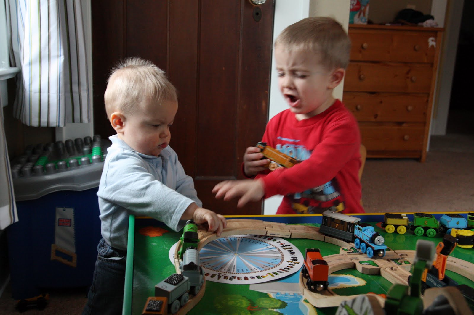 Checking out his one and only gift. Brennan opened it and read it. Trevor just watched. I guess older brothers are sometimes too helpful.